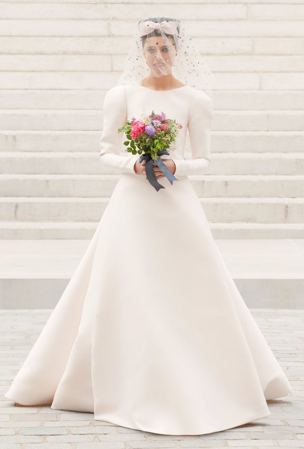 في ختام عرض مجموعة شانيل للأزياء الراقية لخريف وشتاء 2021-2022، أطلّت الممثلة Margaret Qualley بفستان عروس بسيط ، تميز باللون الزهري الفاتح بالقماش السادة الخالي من أيّة تطريزات، هذا إلى جانب الأكتاف المنتفخة. تمّ تنسيقه مع طرحة مطبّعة بالتطريزات ومقترنة بقبّعة سوداء وعقدة باللون الزهري.