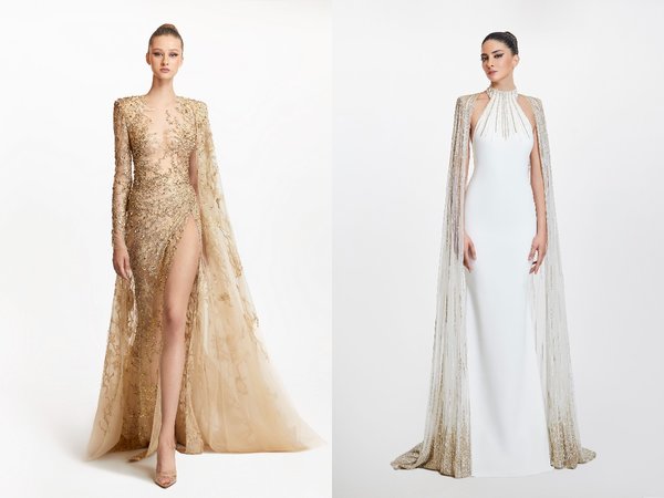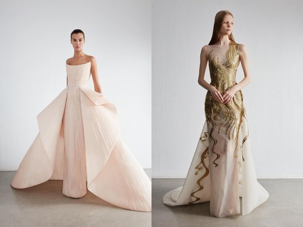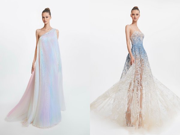 أتت تصاميم المجموعة مزيجاً من الكلاسيكية والحداثة مزينة بتفاصيل دقيقة، حيث رصدنا اللؤلؤ مع الريش والكريستال في الأقمشة الثمينة مثل الحرير والأورغانزا والموسلين. أما قماش التول فأتى بألوان وأشكال متعددة.