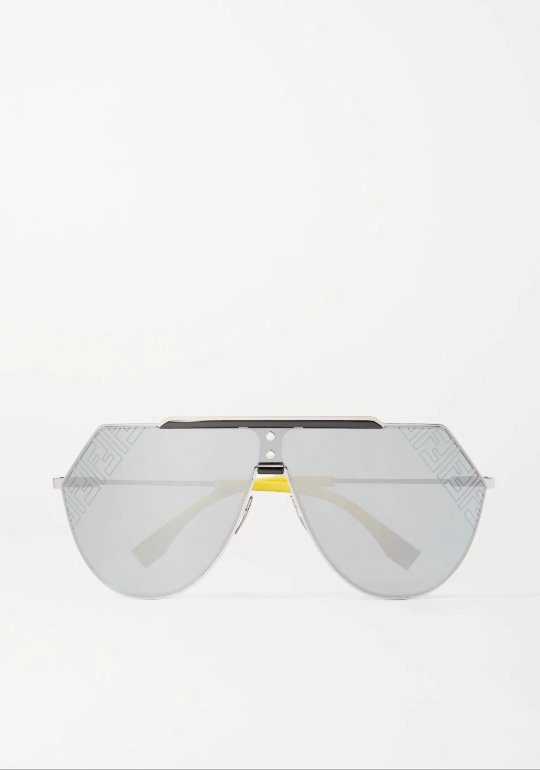 كذلك، يمكنك اللجوء إلى النظارات الشمسية بإطار الـ Aviator حيث تختارينها بإطار المرايا وقج اخترناها لك من علامة Fendi. إنّ هذه النظارات الشمسية تعكس أسلوباً Edgy وتليق كثيراً باللون الاسود والأبيض وأيّ إطلالة قويّة.