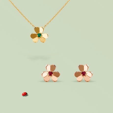 يمكنك تنسيق قلادة وأقراط من اكسسوارات فان كليف بنفس رسمة الورود وبألوان مميزة وراقية.