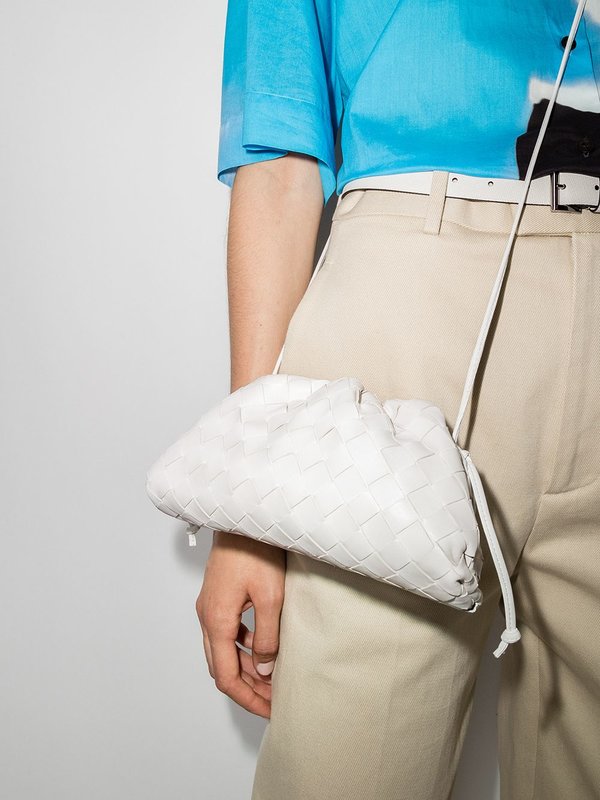 تختلف أحجام وأشكال شنط الكتف في كل الماركات ومنها اخترنا لك شنطة كتف باللون الأبيض وبشكل دائري.