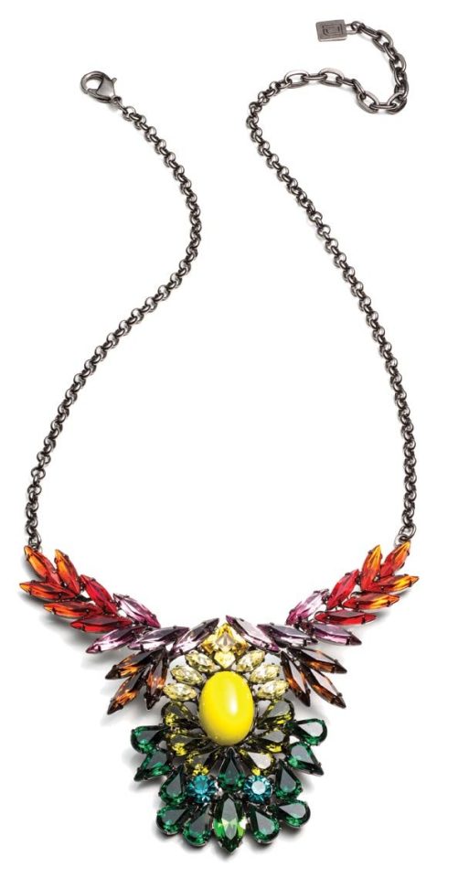 لأنّ الحياة لا تحلو إلا باختلاف ألوانها، دعي إطلالتك تستمتع بالأحجار الكريمة وأضيفي إليها من ألوان الماس والزمرّد ما يناسب أناقتك المترفة. اختاري هذه الأقراط من Mawi وهذه القلادة ذات التصميم المميّز من Dannijo وزيّني معصمك بسوار أخاذ يمنحك المزيد من الثقة بحضورك الأنثوي من Christian Dior.