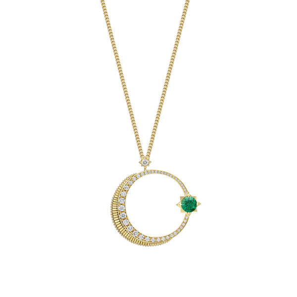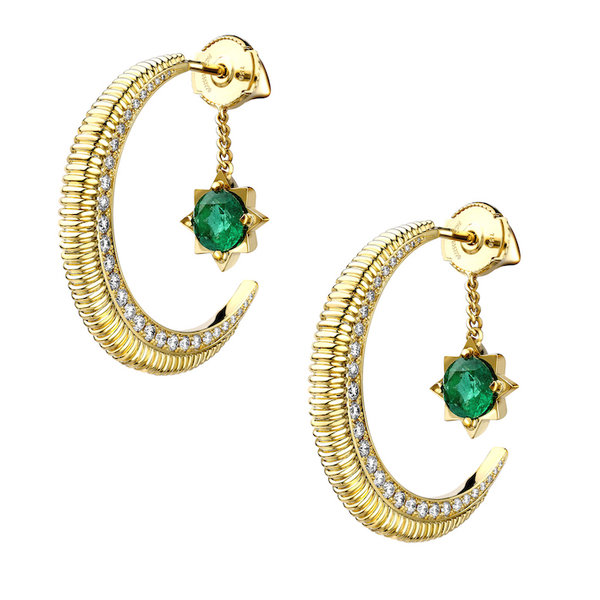 تستمدّ هذه القطع المصمّمة يدوياً الوحي الستينيات، فتتميّز التصاميم بالحرفية ويزيّنها الهلال المرصع بحبيات من الماس والزمرد المستخرج من Gemfields الشركة الرائدة في مجال إنتاج الأحجار الكريمة.