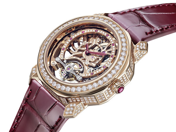 الى جانب ساعة أوكتو روما بريشيوس ناتشورال Octo Roma Precious Naturalia الأنيقة المزيّنة بحجر عين النمر. إضافةً الى ساعة أوكتو روما توربيون لوميير Octo Roma Tourbillon Lumière وهي ساعة السيدات الوحيدة والحصرية في تشكيلة Octo Roma، وهي مرصّعة بحبّات الألماس النقيّة ومزدانة بحجر الياقوت الكريم.