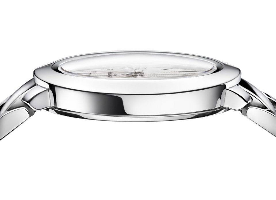 هذه الساعة المعاصرة الملفتة للنظر Promesse بقطرها الدائري وسوارها الذي يكتسي الفولاذ المصقول. تصميمها يتميّز بلونه الفضي على طريقة الـDrape Guilloché، والتي يمتزج في تصميمها اللمسة المعاصرة والسحر الأبدي في نفس اللحظة.