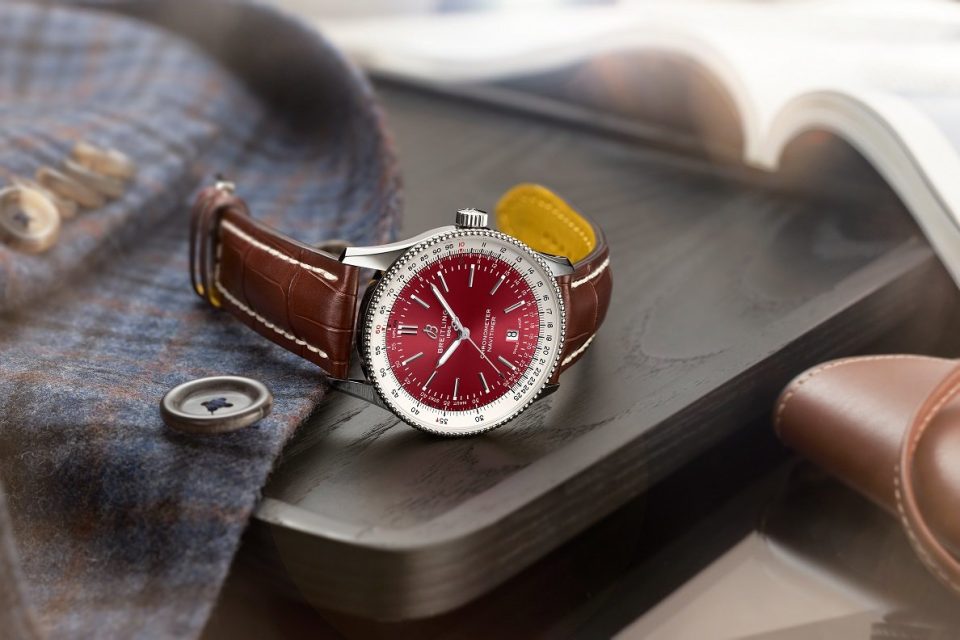 في خطوة تَعِد بتحولها إلى قطعة كلاسيكية على الفور، يتميز إصدار ساعة Navitimer من Breitling بميناء أحمر ساحر مع سوار من جلد التمساح البني اللون. تم تزويد الساعة ببعض ميزات العلامة البارزة التي تضم المسطرة الدائرية المنزلقة، القرص الثنائي الاتجاه المزخرف، بالإضافة إلى العلبة المصنوعة من الفولاذ المقاوم للصدأ بقطر 41 مليمتراً، والميناء الصافي المزوّد بثلاثة عقارب.