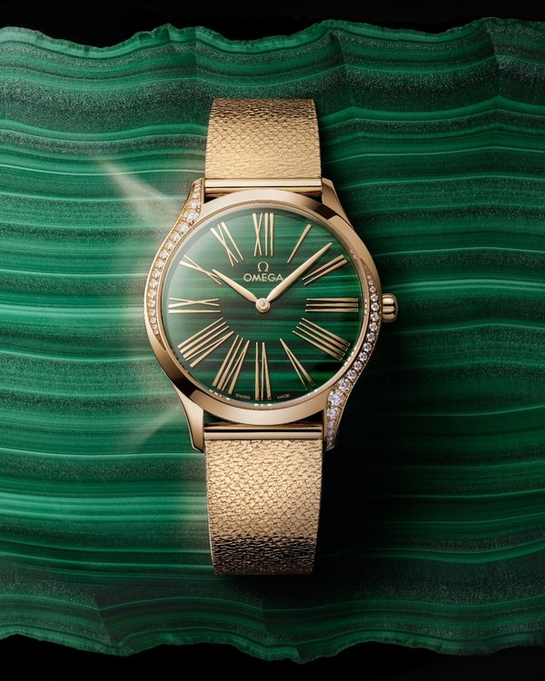 تشتهر مجموعة Tresor من Omega بألوانها الحيوية، ومع انطلاق موسم الاحتفالات ها هي تكشف النقاب عن تصميمين جديدين من الساعات يتميزان بقرص مقبب من المالاكيت.