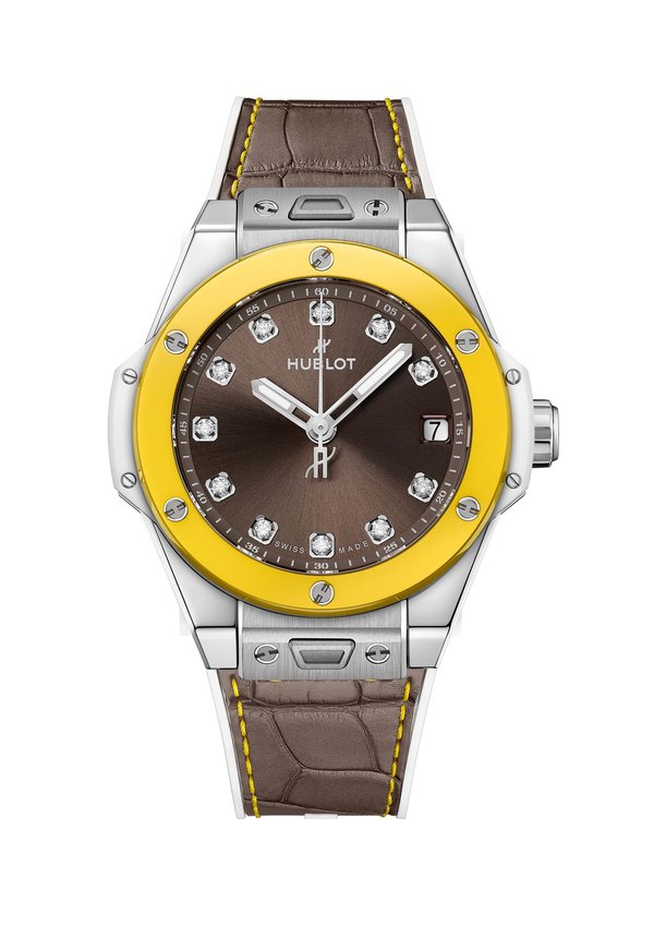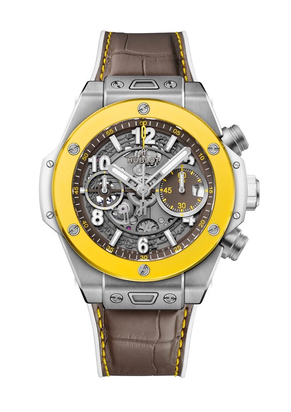 تعكس الساعتان الحصريتان من Hublot كلّ لحظة من لحظات الإقامة التي لا تُنسى في المنتجع. حيث زوّدتا بحزام من جلد التمساح باللون الأبیض والرمادي وبإطار ملمّع من السیرامیك الأصفر.
