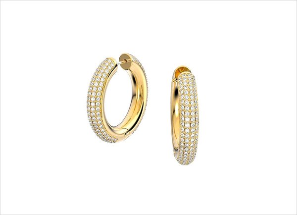 تتزاوج أحجار الكريستال والأجزاء المعدنية مع الترصيع فائق الدقّة بطريقة متراصّفة في تصاميم فريدة تُلبس من الجهة اليمنى.