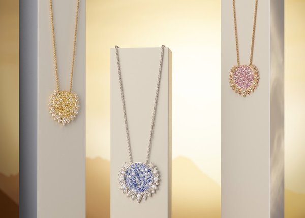 لهذه اللحظة، ابتكرت الدار قلادة وخاتم وساعة وقرطين مع تصميم مرصّع بالألماس يحاكي الشمس، تُقدّم هذه القطع بالذهب الأبيض عيار 18 قيراطاً، مع اعتماد تقنية الترصيع الثلجي لثلاث درجات مختلفة من الياقوت الأزرق؛ لإبراز تلألؤ الشمس.