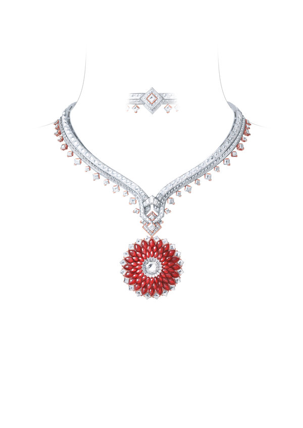 بالتعاون مع Van Cleef & Arpels، ابتكر الفنّان Lorenzo Mattotti مجموعة من الرسومات الفنيّة التي تجسّد الشغف المكبوت والقلق. ويذوب اللونان الأزرق والأحمر القويّان بشكل رائع في هذه الرسومات، فيما تبرز لمسات من اللون الأصفر لتضفي دفئاً على هذه المشاهد الليليّة.