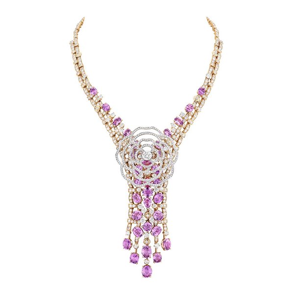 تعتبر الكاميليا رمز مميز في أسلوب غابريال شانيل للمرأة المحررة. الكاميليا هي أيضًا رمز للرقة والتميز. في هذه المجموعة، برز الكمال الهندسي لزهرة الكاميليا من خلال نقش لتطريزات من الذهب الوردي مرصعة بأحجار الياقوت الوردي والفوشيا على نسج بارز. هذا نسيج أناقته صريحة، ويجمع بين الشفافية والتناقضات.
