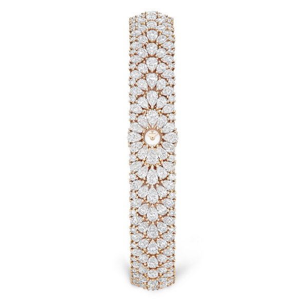تم ترصيع السوار بـ 996 ماسة، بأحجام متدرّجة لإبراز انحناءات التصميم. وجمع الحرفيون بين تقنيّتَي الترصيع المخلبيّ (144 ماسة) والترصيع الحبيبيّ (852 ماسة) لتعزيز أثر البعد الثلاثي للماس وزيادة التلاعب الضوئي إلى أقصى حد.