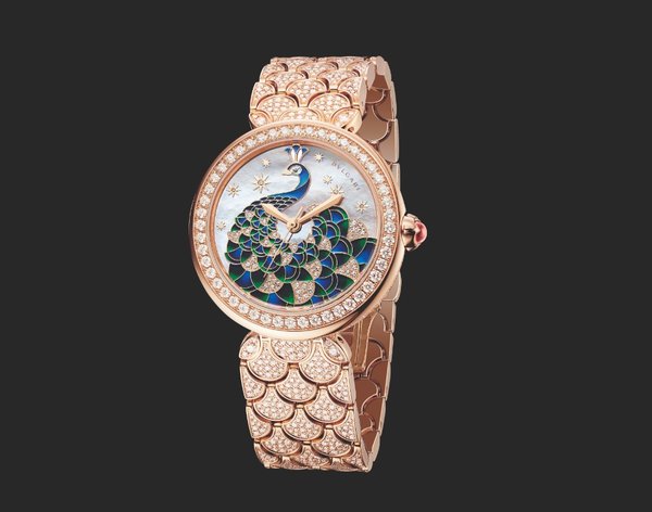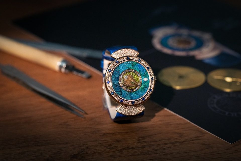 تتوفر هذه الساعة من Bvlgari بإصدار حصري، من 10 قطع. تتميز ساعة ساعة ديفاز دريم بيكوك توربيون لوميير بمينائها الذي يعرض هيكلها الداخلي مع تزيينات ونقوش من ريش الطاووس الطبيعي، وقطع ألماس بتصميم مستوحى من ندف الثلج.