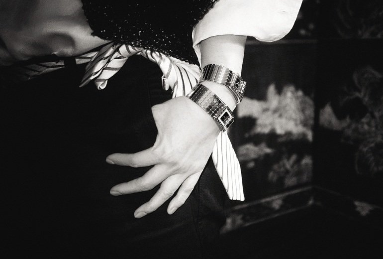 نتعرّف في البداية على مشبك حقيبة 2.55، وننتقل بعدها إلى العقربين، ثمّ نتحوّل على طول السوار المبطّن، فنجد أنّه تمّ فكّ شيفرة الساعة. إنّها قطعة مجوهرات وساعة ومجموعة رموز في الوقت نفسه.