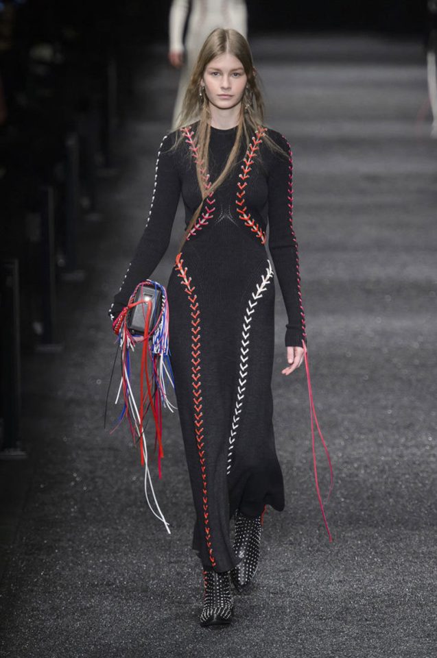 برزت الفساتين ذات الطول المتوسط، التي أتت صوفية أو من الليكرا ومزينة بالشرائط، وتضمنت المجموعة السترات الجلدية والرسمية المزينة بالأحزمة والمنسقة إما مع السراويل الرسمية أو مع التنانير الجلدية أو حتى مع السراويل الرسمية الواسعة، التي تم تنسيقها مع التوبات الطويلة أو تلك التي جاءت بالقصة غير المستقيمة. ومن حيث الألوان، سيطر كل من الأحمر والأبيض والرمادي والذهبي، كما أن الأقمشة تنوعت بين الريش والفرو الملون، إلى جانب القماش الشفاف والتويد والجلد.