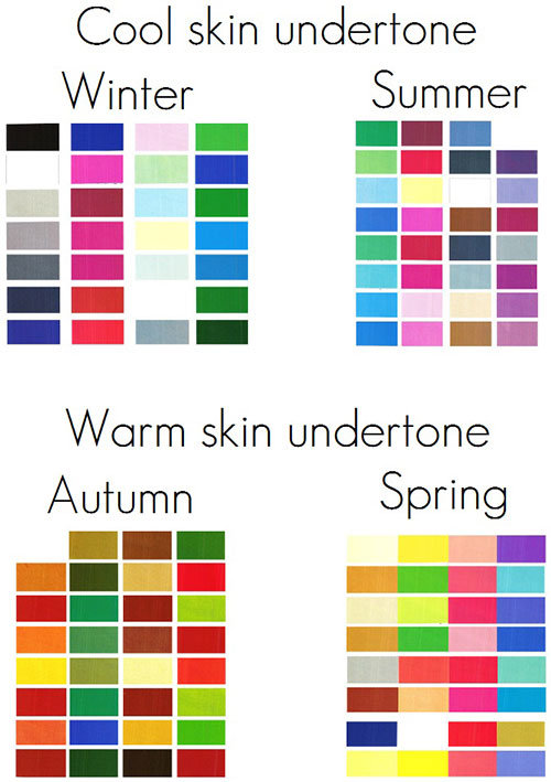 أولاً عليك معرفة لون بشرتك الباطنيّ، الذي يمكنه أن يكون إمّا فاتح أو داكن، ولمعرفة ذلك الطريقة بسيطة: إنظري إلى معصم يدك، إذا رأيت أن لون عروقك أزرق إذاً أنت من ذوي البشرة الباردة أو الفاتحة، فتشبهين إذاً سكارليت جوهانسن، كارا ديليفين وكامرون دياز؛ أمّا إذا كان لون عروقك يميل إلى الخضار، إذاً بشرتك دافئة، أو داكنة مثل جينيفر لوبز وغيرها.