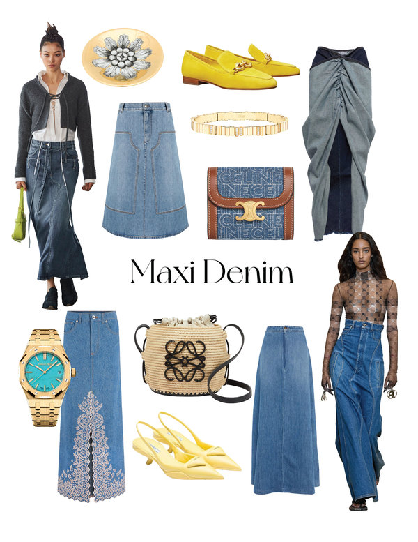 نشهد انتشار هذه الصيحة التي كانت سائدة في السبعينيّات في كل مكان هذا الموسم. فقَصّة فستان الدنيم المكسي الضيّقة على الجسم والمتوفّرة بأطوال متنوعة تظهر جمال قوام أي شخص. ويمكن ارتداء هذا الفستان في النهار أو في المساء، ومع حذاء بكعب عالي أو بدون كعب. فيكمن جماله بتنوع استعمالاته إذ يمكن تنسيقه بسهولة مع أحذية رياضية عند إكمال المهمات اليومية أو مع كعبكِ المفضّل أو صندل لإطلالة مسائية.