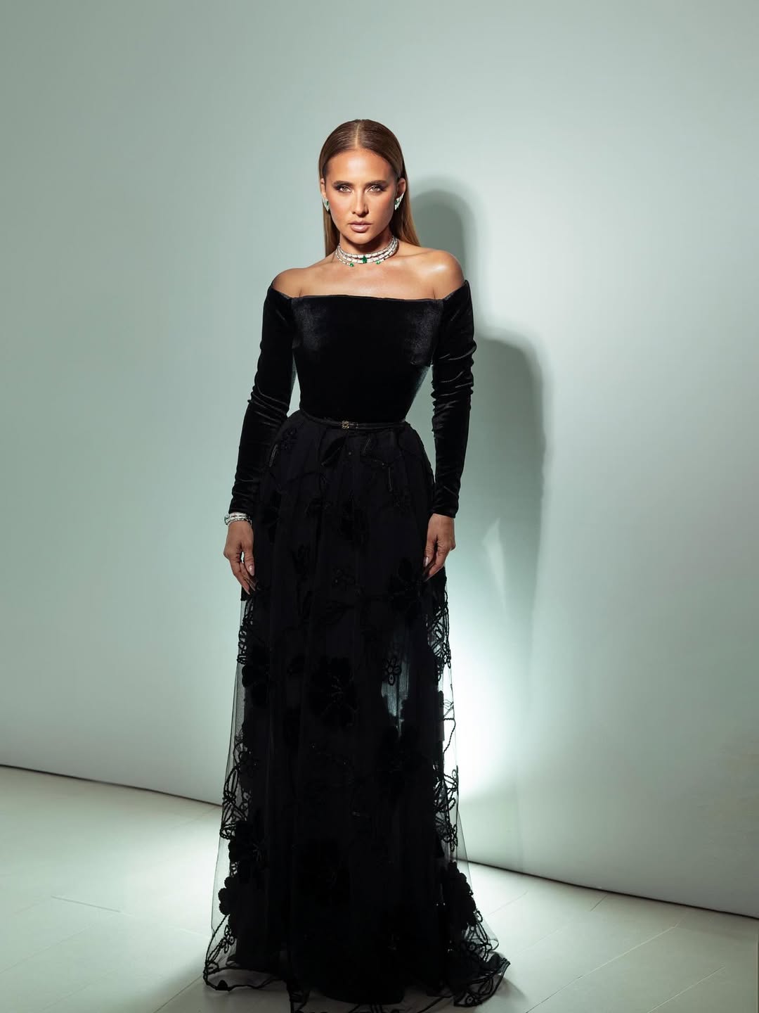 لمن تفضل إطلالة محتشمة من دون التخلي عن الأناقة، تأتي فساتين السهرة بأكمام الكاب كخيار مثالي. هذا التصميم يضيف لمسة ناعمة ومتوازنة، ويُستخدم غالبًا مع تطريزات دقيقة أو أقمشة فاخرة ليعكس الرقي والبساطة في آن واحد. فستان ريم السعيدي رائع ولونه البني يزيده فخامة!