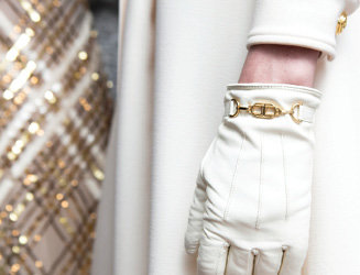 مثلاً، علامة Versace قدمت القفازات الطويلة والقصيرة، وقد أتت مزينة بشعار الدار.