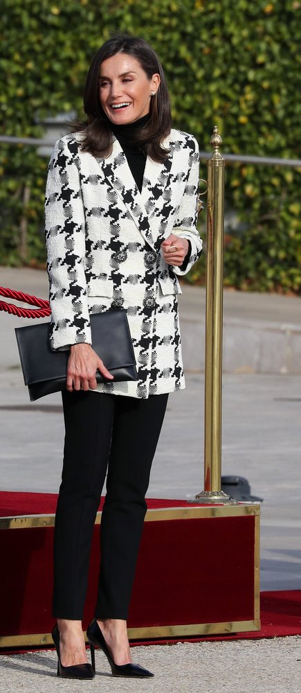 وما جعلنا نعيد ونسلّط الضوء على هذه القطعة إطلالة الملكة الإسبانية ليتيسيا التي أطلّت مؤخراً ببلايزر عكست نقشة المربعات بلوني الأبيض والأسود والمعروفة بنقشة Houndstooth والتي تعدّ من أكثر النقشات رواجاً هذا الشتاء.