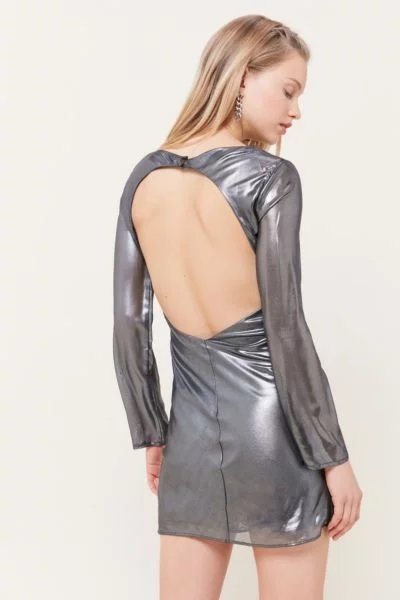 يمكن أن تكون الفساتين ذات الظهر المفتوح قصيرة وأنيقة، وهناك خيارات كثيرة يمكن أن تشاهديها على صفحات الإنترنت منها الفساتين ذات الأكمام الطويلة والواسعة أو الضيقة عليك هنا الإنتباه إلى شكل الأكمام التي تليق بك وتناسب الفستان. نحن اخترنا موديل فستان ظهر مفتوح قصير باللون الفضي البراق.