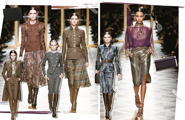 الصرامة والقوّة، صفتان طبعتا أزياء Ferragamo هذا الموسم، فبدت المرأة وكأنّها خارجة من ثكنة عسكريّة تسير بخطى ثابتة، ملامحها هادئة ومريحة وأزياؤها راقية وأنيقة. سترات ضيّقة، فساتين مستقيمة مرفقة بأحذية عالية تصل إلى الركبة، معاطف طويلة وسترات صوفيّة سميكة مع تنانير حريريّة… إنّها السمات العامّة للمجموعة.