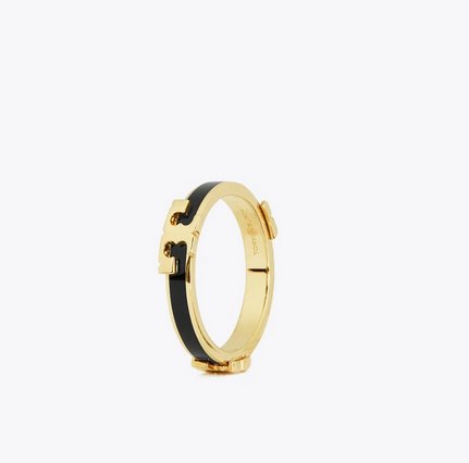 خواتم توري بورش بتصميم رفيع جداً مطعّم باللون الأسود وممزوج بالذهب الأصفر.