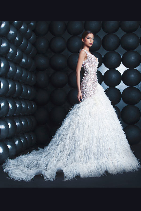 وميّز جبران مجموعته الجديدة بثلاثة فساتين زفاف تحبس الأنفاس بتفاصيلها وجرأتها وجمالها، ولعلّ البارز فيها هو ذلك الفستان الذي أشعّ بزخارف الباروك المدهشة وبذلك اللون الأحمر الأرجواني الساحر وأيضاً بتصميم الطرحة المبتكرة وكذلك بفكرة البنطلون الجريئة التي تجعل عروس جبران حتماً مختلفة تنضح بالجرأة والثقة بالتميّز.