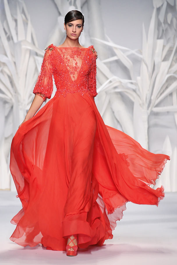 إنّه الولع بالبريق الأنيق ذلك الذي ترك أثره واضحاً على الفساتين التي يقدّمها لك المصمّم اللبناني العالمي عبد محفوظ ضمن مجموعته لخريف وشتاء 2013-2014، فقد أدخل إلى تصاميمه تفاصيل تليق بذوق المرأة العصرية المولعة بالأناقة العملية، إذ زخرت فساتينه بعناصر الزخرفة والتطريز وأوجه الزينة المختلفة، فشكل تناقض المعادن مع نعومة الأقمشة سحراً لا يضاهى. كذلك غزت فساتين هذه المجموعة أشكال مستوحاة من عالم النباتات والزهور المفعم بإيحاءات الأنوثة امتزجت مع أقمشة التول والدانتيل والكريب الحريري لتمنحك في حال اخترتها غموضاً آسراً لا حدود لجاذبيته وجاءت ألوان عبد محفوظ متناسقة مع توق تصاميمه الدائم إلى الرقي والتميّز، إذ قدّم لك فساتينه في قوالب من المرجان والأزرق الماوي والأخضر الزجاجي لكي يذهب بك إلى أقصى أقاصي خياله الإبداعي ويجعل منك سيّدة أناقة هذا الموسم.