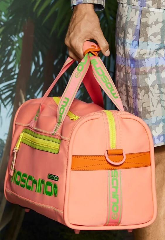 شنطة يد رجالية بألوان فرحة ومنعشة من Moschino تناسب فصل الصيف ولما لا تختارها لرحلات السفر أو لرحلات الشاطىء؟