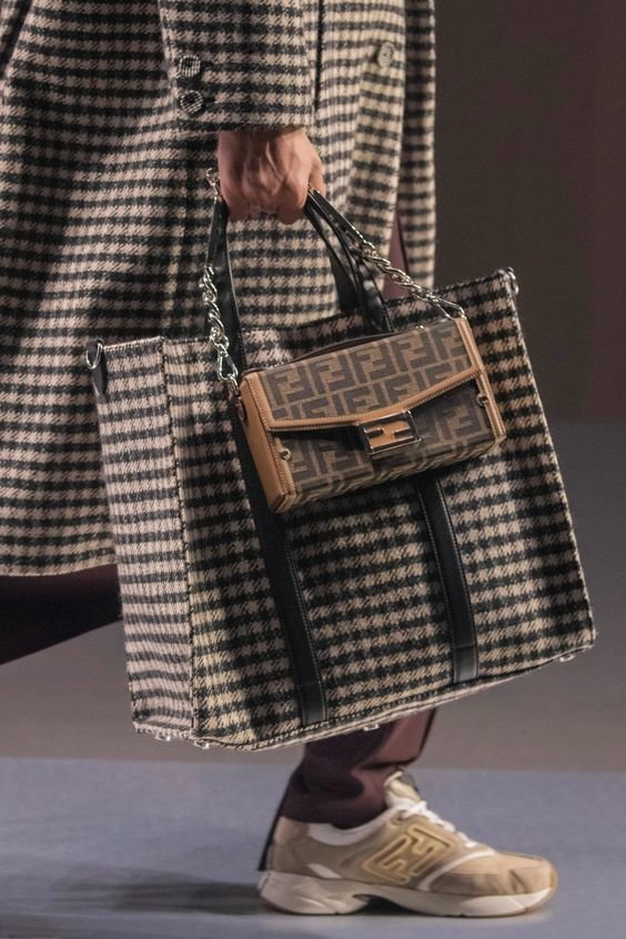 شنطة يد رجالية 2022 من فندي تتميز بتصميمها المزدوج بين شنطة كبيرة وشنطة صغيرة يمكن فصلهما عن بعضهما وتليق بإجتماعات العمل.