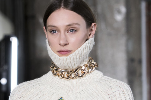 البداية مع عقود الشوكر الضخمة والمعدنية والتي تأتي بأسلوب الضفائر وتعكس أسلوباً Edgy. ندعوك هذا الشتاء لاعتمادها فوق الياقة العالية وتحديداً تلك الخاصّة بكنزاتك الصوفية الفضفاضة وذلك لإضفاء لمسة قويّة ومميّزة عليها.