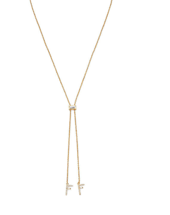 مع سلسلة طويلة قابلة للتعديل، تتميز هذه القطعة الجميلة بقلادتين على شكل حرف F مرصعتين بالكريستالات البيضاء الناعمة.