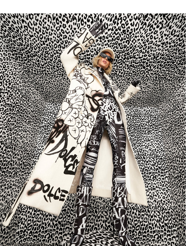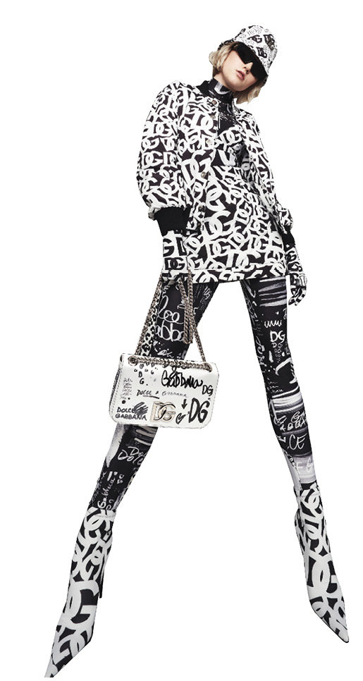 وتدمج المجموعة التي تم طرحها حديثاً شعار الدار الرمزي مع رسومات غرافيتي بتدرجَي الأسود والأبيض الكلاسيكيين، نظراً لكونه الرمز الأكثر تمثيلاً للعلامة التجارية. وتعزز الموديلات الضخمة والمتباينة جمال القوام الأنثوي، فتبعث حداثة تعكس روعة النساء. وتمتزج أنواع مختلفة من الأقمشة، بحيث يترافق الدانتيل مع زخارف من الكريستال، وجزمة عالية مع سترة جلدية ضيقة وتنورة متوسطة الطول ومزخرفة مع جزمة ضخمة، ما يمنح جوهراً لمجموعة مذهلة تحتوي على جميع عناصر المزاوجة.