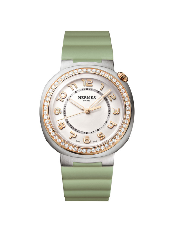 لطالما كانت دار Hermès الفرنسيّة واحدة من أفخم علامات الأزياء التي تمتلك قاعدة عملاء متخصصة تحقق لها حلمها بتقديم تصاميم بسيطة ومينيماليّة تحمل قيمة لمن يرتديها. وتأتي مجموعة الساعات Hermès Cut بتصاميمها المستديرة لتحتفل بجمال الأشكال والتصاميم البسيطة. وتُظهر النسب المتوازنة والحواف النظيفة طابع المجموعة، في حين أنّ التداخل بين الساتان والتشطيبات المصقولة يضفي على كل قطعة إحساساً بالفردية والحميمية بحيث تخلق التركيبات الفنية التوازن المثالي بين الصقل والبساطة. وتتوفّر هذه الساعات بثمانية أحزمة مطاطية بلوحة الألوان الأنيقة المعروفة بها Hermès، ويمكن تبديلها والنزيّن في كلّ مرّة بلون مختلف.