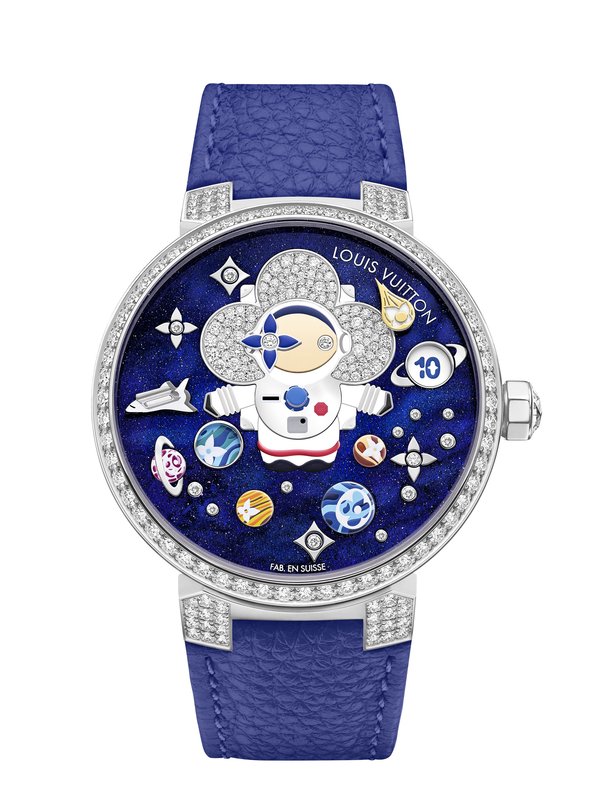 في طراز Astronaut، ينبض الفضاء الواسع بالحياة مع رائدة الفضاء Vivienne التي تظهر على ميناء الساعة الاستثنائي المصنوع ولأول مرة في هذه المجموعة، من عرق اللؤلؤ الأزرق والأفينتورين. مرتديةً بدلة رائد فضاء، تجلس Vivienne على ميناء الساعة محاطةً بكوكبة من الألماس وزهور Monogram ورسم لصاروخ وكواكب، لتنقل مرتدي الساعة إلى عالم سحري من الأحلام والقصص الخيالية. أمّا طراز Sakura، ف يحمل هشاشة وأناقة زهرة أشجار الكرز اليابانية. وتحت أيدي الحرفيين الرئيسيين، تم صنع أنماط الأزهار الدقيقة باستخدام تقنية Holomonogram التي تتكون من لؤلؤ مصقول بالرمل لتحقيق زخارف عالية التباين ولكن شفافة. وأتى وجه Vivienne التي ترتدي الكيمونو محاطاً بألماس أبيض وأزهار وأغصان شجرة الكرز التي رسمها حرفيو La Fabrique de Temps Louis Vuitton يدوياً وبدقّة.