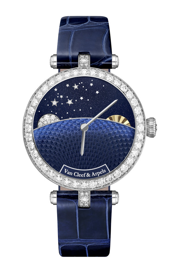 تلتزم دار Van Cleef & Arpels التزاماً خالداً بمشاركة الأحلام التي تتشاركها مع حرفييها، أحلام من عالم الخيال تحوّلها إلى واقع. فلطالما كانت Van Cleef & Arpels دار للحالمين، تمزج بين الفن وصناعة المجوهرات التي يتم تصويرها من خلال القصص الساحرة والشعر والرقص. وفي ساعة Lady Arpels Jour Enchanté، جسّدت صباحاً حالماً مع جنيّة تقطف الأزهار بينما تغمرها أشعّة شمس الصباح الباكر وتلامس أوراق الشجر المصنوعة من الذهب الأبيض، كما جسّدت أزهار تنقلنا بألوانها المبهرة إلى حقل أزهار واسعٍ لا حدود له. وامتزج عقيق السبيسارتيت الثمين والزفير الملون والألماس مع مينا façonne، وهو مادة تبدو شفّافة للنظر وتعطي حجم للقطعة. وفي ساعة Lady Jour Nuit السحرية، تم تصوير ضخامة الكون وسحر الليل المرصّع بالنجوم. وأتت الساعة بقرص بحجم 33 ملم، ومصنوعة من الذهب الأبيض والأصفر والألماس وعرق اللؤلؤ وحزام من جلد التمساح الثمين، وجسّدت الأفق باستعمال عرق اللؤلؤ الأزرق، والشمس والقمر وسماء الليل المليئة بنجوم ساحرة. إنها ساعة تنضح بالأنوثة وتأخذنا في رحلة سحرية أشبه بالحلم.