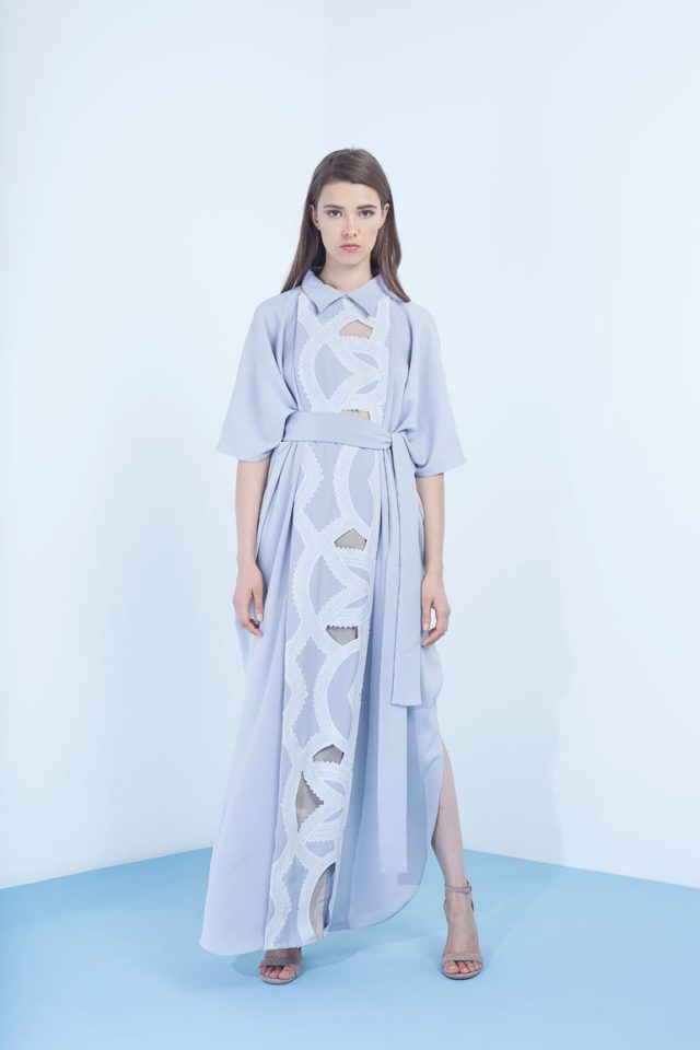 إلى جانب ألوان الباستيل الهادئة، أدخلت مصممتا الدار الشقيقتان لبنى وناديا زكواني تفاصيل من التطريزات المستعملة في صناعة القبعة العمانية التقليدية التي يرتديها الرجال، والمعروفة باسم “الكمّة”.