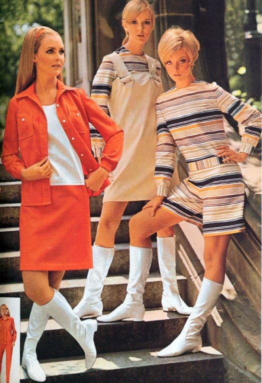 إدخال التنورة القصيرة ، الذي ربما كان أحد أهم اتجاهات الموضة في الستينيات ، من شأنه أن يغير الموضة إلى الأبد. لا تزال التنورة القصيرة من أساسيات الموضة للنساء اليوم. يمكنك ارتداؤها كما في الستينيات بصنادل أو أحذية تصل إلى الركبة في الصيف وجوارب ملونة في الشتاء.
