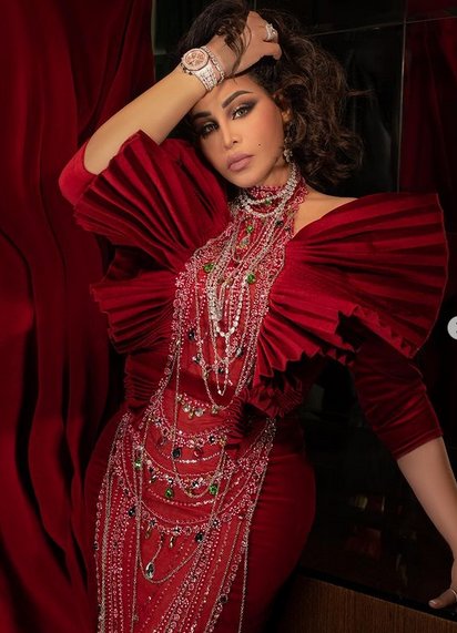 تعتمد النجمة أحلام على اكسسوار الحزام لإبراز خصرها المنحوت، خاصة بعدما خضعت لنظام غذائي وخسرت الكثير من وزنها الزائد.