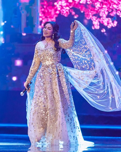 من الفساتين التي ترتديها الفنانة أحلام مئخراً هي الفساتين الضيقة أيضاً لفتنا اختيارها للفساتين ذات الموديلات الفخمة والتي تضاف إليها الذيل الطويل ما يعطي إطلالتها فخامة وتألقاً.
