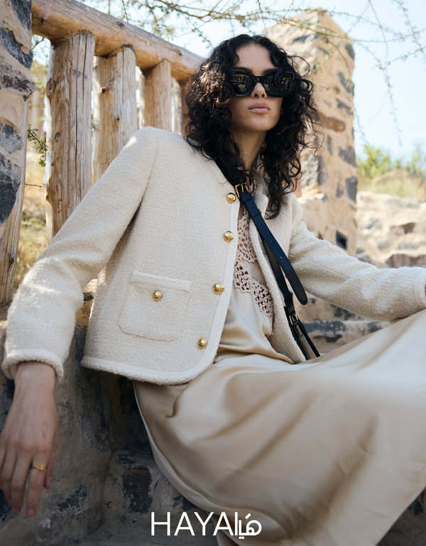 الصورة الرئيسية:السترة والبليزر والكورسيه من Kristina Fidelskaya، الحقيبة من Jimmy Choo، الأقراط من Khan Begüm وقبّعة vintage