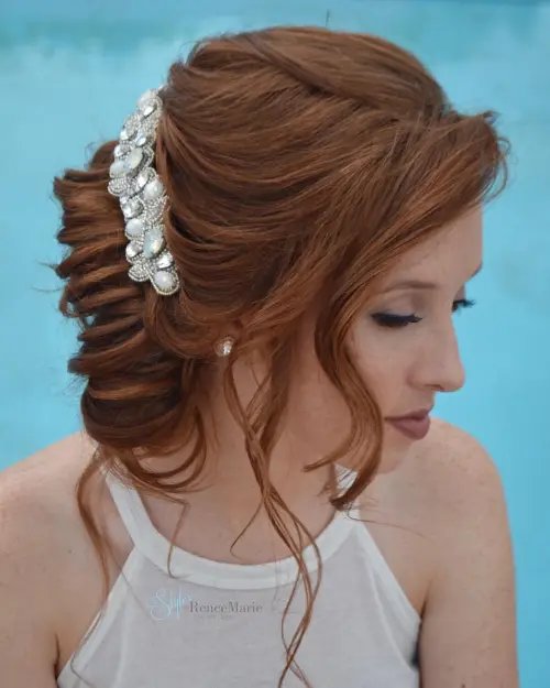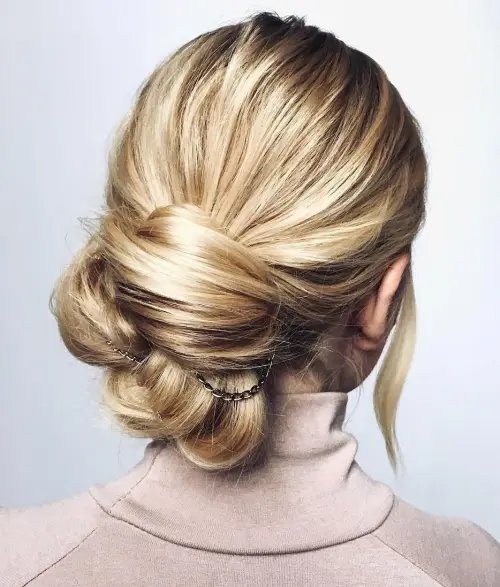 تسريحة شعر ملفوفة غير متماثلة لفستان هالتر