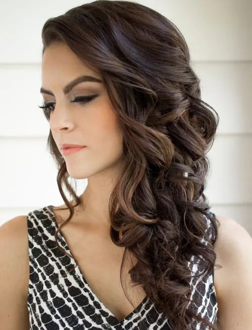 تعتبر خطوط العنق للفستان على شكل قلب بسيطة وأنثوية وتناسب مجموعة متنوعة من تسريحات الشعر. ومع ذلك، يتم اختيارها بشكل شائع لحفلات التخرج أو فساتين الزفاف، مما يجعلها المناسبة المثالية لتصفيفة شعر خاصة. تجعيدات طويلة وناعمة، تتساقط على الكتفين مع هذا الفستان.