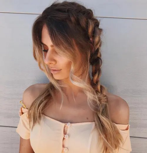 فستان مكشوف الكتفين مع ضفائر وتجعيدات فوضوية