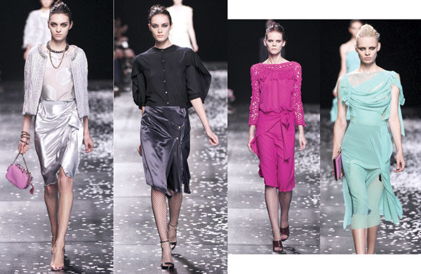 أبدع المصمّم البريطاني Peter Copping في مجموعة ربيع وصيف 2013 التي قدّمها مع دار Nina Ricci، وساد جو هادئ ورومانسي على أجواء المجموعة التي كثُرت فيها الفساتين متوسّطة الطول. أما الأقمشة، فتراوحت بين الساتان والحرير والشيفون.