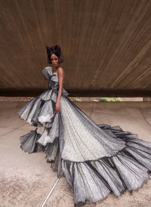 من مجموعة المضم جيامباتيستا فالي الأخيرة اخترنا لك فستاناً باللونين الأبيض والسود منفوش مزين بطبقات يليق بحفلاتك الضخمة ومناسباتك الكبيرة.