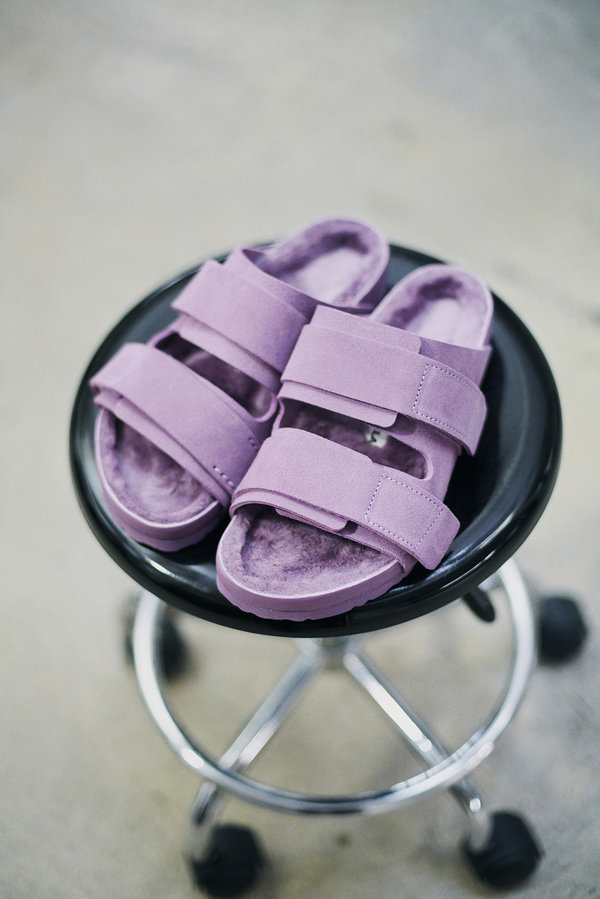أمّا الصنادل، فأتت بألوان أحادية، منها الأصفر الشاحب والرمادي والأرجواني الشاحب، مع وسادة القدم التقويمية الخاصة بعلامة BIRKENSTOCK مغطّات بشيرلينغ ناعم وجلد نابا لضمان مزيد من الراحة، بينما تتداخل الأحزمة مع تفاصيل الخياطة اليدوية والمقابض المصنوعة من أجود المواد.