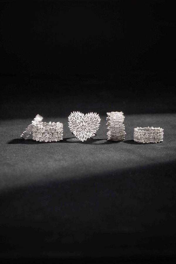 بصراحة، جاء ذلك بمحض الصدفة. أُدير هذا العمل منذ 37 عاماً بالشراكة مع زوجي، كما يشاركني فيه اليوم ابني وابنتي. وكنتُ أفكر في أحد الأيام في تصميم مجموعة جديدة، وكنت ألعب بمجموعة من أحجار الألماس المقطوعة بأسلوب باغيت التي أعشق شكلها البسيط والجريء في تفس الوقت، لكنني لم أحب طريقة رصفها التقليدية بنمط باليرينا. شعرت أنّه بإمكاني تقديمها بأسلوب مختلف. سكبت الأحجار أمامي، وكما أفعل عادةً، تأملتها حتى تبلورت الفكرة في ذهني: أن تظل الأحجار مبعثرة كما هي أمامي مبعثرة على الطاولة، لا مصفوفة في خط مستقيم. وبعدها صممنا أول قطعة، وهي خاتم ضمن مجموعة Fireworks، وعرضناه لأول مرة في معرض Couture Show للمجوهرات في لاس فيغاس وفزنا بجائزة، ومنذ ذلك الحين، انطلقت المسيرة بقوة ولا تزال مستمرة بنجاح كبير.